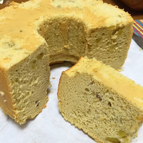 プレーンタイプなシフォンケーキでは物足りなくなって色々やってます。 今日は焼芋をマッシュしていれました。 焼芋はアルミで包んで160度で60分ほどオーブンして、皮をざっくり向いたのを、これまたざっくり潰しました。 焼芋がある分、黄卵生地には牛乳を…